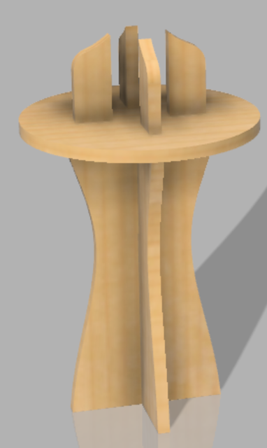 The idea is that it would be made of 3 pieces, two vertical handle pieces and a circular wax catching piece which would slot on top. Everything would be cut from 1/8" Birch Plywood on the Vassar Innovation Lab’s Epilog Laser Cuttter. It would cost a total of $4 in materials. Here was my 3D model: