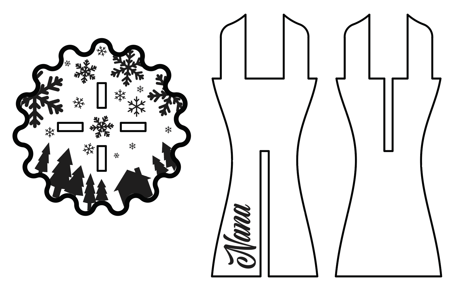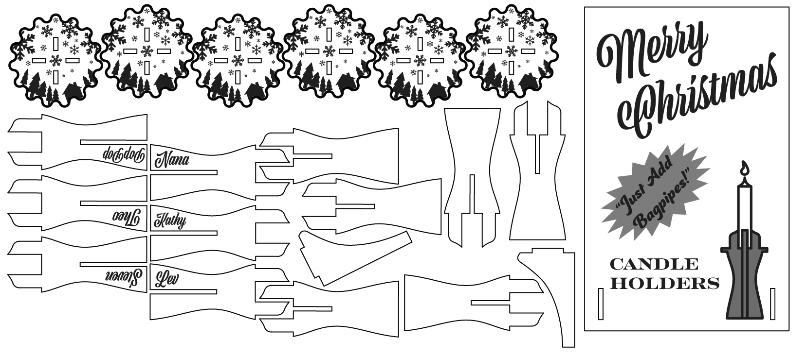 I then took that design, made drawings from the components, and imported it into Illustrator, where I added some decoration. Here were the finished vector file layouts: